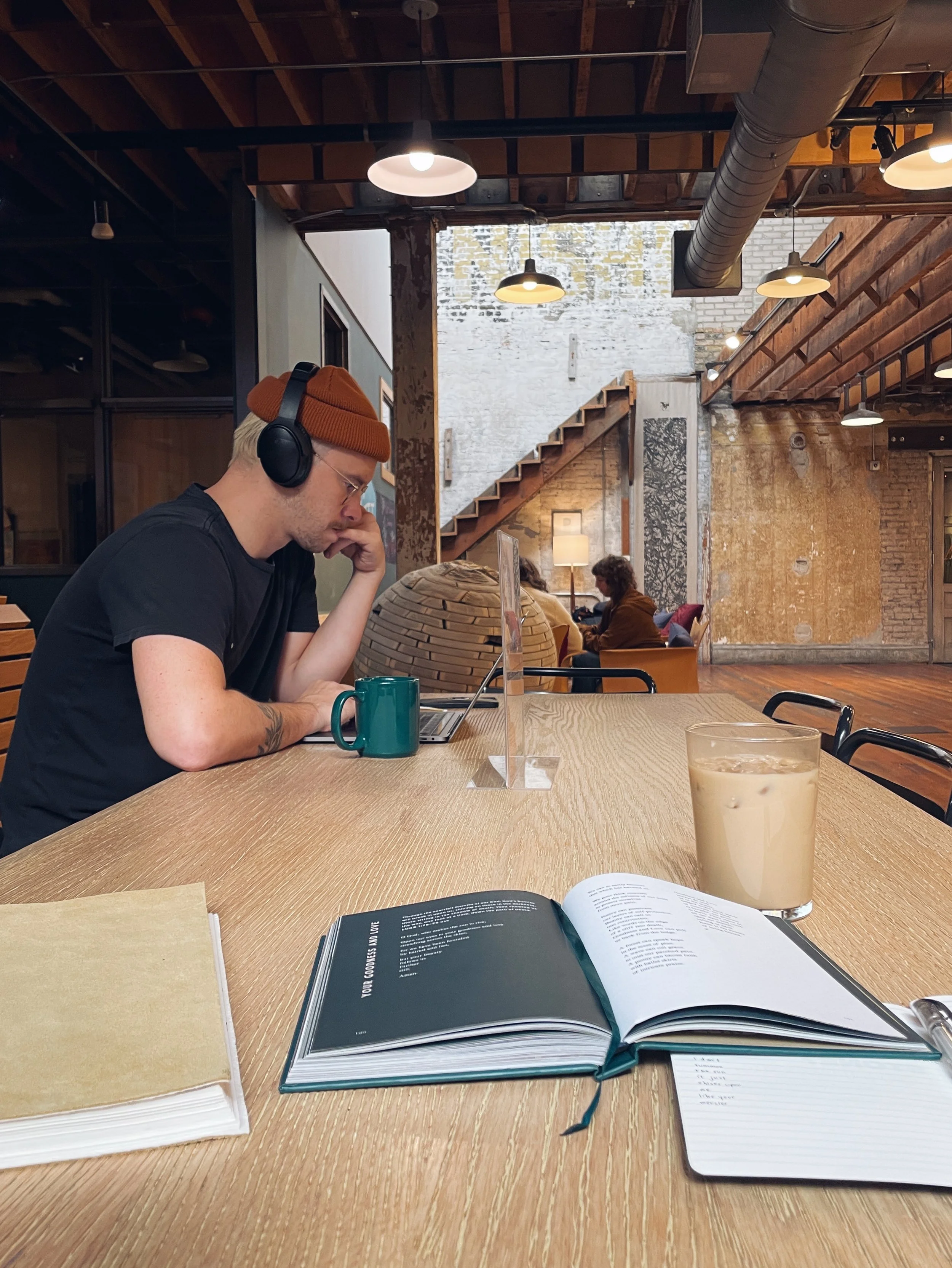 On a bike. Walking a park. Experimenting in the kitchen. Dancing along to live music. In a crowded coffee shop, alone with a book.
