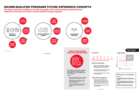 • Based on concepts created in multi-day session, we outlined a cohesive future experience that enables support of a variety of key people and partners who experience, promote, and deliver income-qualified energy assistance programs